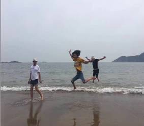 上午上山下海,下午就該忙里偷閑了。到了我們此次旅行的最后一站,朱家尖國(guó)際沙雕廣場(chǎng)。顧不得那些精致的沙雕,海灘海水的吸引力對(duì)我們來(lái)說(shuō)更勝一籌!眼前的沙灘,寬廣舒展,沙質(zhì)細(xì)膩,還沒到盛夏,雖說(shuō)海水有點(diǎn)涼,但大家還是都忍不住脫了鞋襪,卷起朵朵浪花,踏浪歡歌。赤足奔跑在沙灘上,歡呼、雀躍,不顧形象,放飛自我。近海的海水比較渾濁,混著泥沙,不是湛清碧綠的水,那又何妨呢?夕陽(yáng)下波光粼粼,那些波光是不是美人魚身上有著神奇魔法的鱗片?還是漁民燃著希望的眼神?陽(yáng)光、沙灘、海浪,有沒有一位老船長(zhǎng),來(lái)帶我們駛向外婆家的小港灣呢?