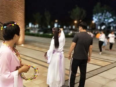 七夕當(dāng)晚,我們的亞太天使換上了準(zhǔn)備已久的服飾,手提滿載花環(huán)的花籃,迎接情侶們的到來(lái)。一對(duì)對(duì)情侶攜手漫步前行,在這樣的節(jié)日里看到這樣的情景感覺(jué)特別的浪漫。我們的天使迎接上去,將載滿愛(ài)的花環(huán)輕輕的戴在每位女士的秀發(fā)上,祝福“有情人終成眷屬”。