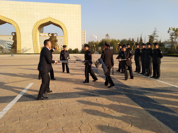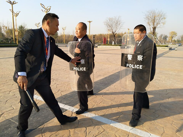 此次演練模擬場景為:興隆文化園景區(qū)門前有兩名暴恐分子襲擊游客。安保隊員看到此景后迅速拿起值班室放置的盾牌、鋼叉、電棍、大頭棒等器械沖出來,齊心協(xié)力將暴恐分子制服。演練過程中,演練人員反應(yīng)迅速,配合默契,采取處置措施及時、合理,表現(xiàn)出良好的處突能力。