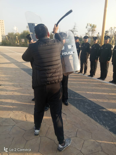 面對游客高峰期對破壞景區(qū)秩序及人民財產安全受到威脅時,如何使用防爆盾牌對人員進行阻擋隔離,現(xiàn)場指導隊員們逐個進行實際操作,確保每個隊員對防爆技能學會、學好,在教官的培訓中,我們亞太安保人員認真學習,細心演練,每個動作和要點 一遍一遍進行摸爬滾打,現(xiàn)場精彩組織有序,時不時招來業(yè)主辦公大樓里的人員推開窗戶給出的贊揚和掌聲。