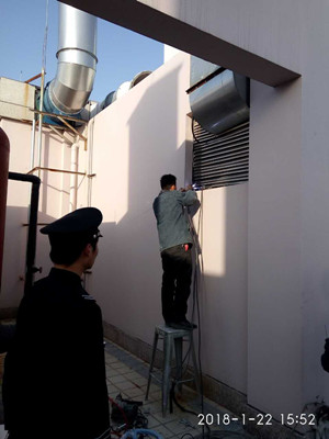 這是咋回事呢?原來1月20日,保安在日常巡邏中,發(fā)現(xiàn)西樓頂排煙管穿墻格柵松動歪斜。由于1月20日是星期六,大樓基建負(fù)責(zé)人在休假。安保人員只好電話向該負(fù)責(zé)人匯報問題。并請求他聯(lián)系施工方盡快維修。因?yàn)槭┕し皆谕獾刈鳂I(yè)趕不回來,所以承若星期一派人來維修。這便出現(xiàn)了文章開頭的一幕。