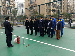 上午九點全體人員在會議室學習消防安全理論知識,了解消防安全的重要性和必要性。培訓學習后,我們在小區(qū)的網球場上進行實地滅火演練,先由安全培訓員講解滅火器的使用方法,進行滅火演示,然后參與演練的人員一一操作滅火器進行滅火演練。滅火演練結束后,我們進行人員逃生演習。逃生時下樓梯靠右走,降低身體高度,一手扶墻,一手用濕毛巾捂住口鼻,按照規(guī)定路線疏散直至到達安全地帶。