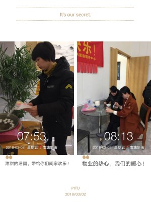 為豐富廣大住戶的社區(qū)文化生活,增強(qiáng)住戶與物業(yè)的親和力,營(yíng)造良好的節(jié)日氣氛,南塘新街物業(yè)管理處在2號(hào)樓大堂舉辦“濃情元宵,歡樂相伴”元宵節(jié)吃湯圓猜燈謎活動(dòng)。活動(dòng)前幾天物業(yè)就張貼好溫馨提示和微信群發(fā)住戶們前來參與。