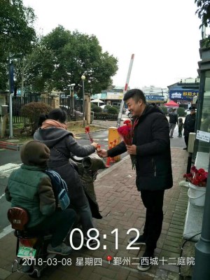 為此,我管理處早早為女同胞們準(zhǔn)備了各式各樣的鮮花,提前一天對(duì)鮮花進(jìn)行剪枝包裝。3月8日早晨8點(diǎn),在領(lǐng)導(dǎo)的帶領(lǐng)下,在我小區(qū)東門、南門進(jìn)出口處發(fā)放大量鮮花,用我們自己的方式來(lái)慶祝這個(gè)美好的節(jié)日.給大家送去歡樂(lè)和祝福。