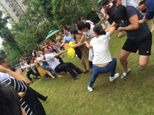 開始全體拍照、并在橫幅上簽名。各單項游戲開始啦!兩點半小區(qū)枇杷采摘游戲規(guī)則。小朋友們在工作人員的帶領(lǐng)下,去樹上摘取帶有枇杷圖案的圖片,然后在工作人員處兌換枇杷。(小區(qū)本有枇杷果,上周果實早已成熟掉落,所以想出此方案)三點至四點挖寶行動游戲規(guī)則在中庭與游樂場中間周邊空地上找彩球,打開彩球里面有紙條,小朋友們可根據(jù)紙條在工作人員處兌換相應(yīng)的禮品。若紙條顯示是金幣,可以在糖畫處兌換等額糖畫。糖畫是集民間工藝美術(shù)與美食一體獨特的傳統(tǒng)手工技藝。屬中國國家級第二批非物質(zhì)文化遺產(chǎn)名錄,深受小朋友喜歡?,F(xiàn)場小朋友們排起了長龍隊。小朋友們是人手一支。同時美食顧問專家現(xiàn)場設(shè)有免費的鮮榨果汁和水果區(qū)域?,F(xiàn)場那是一個熱鬧。掌聲、笑聲、歡呼聲連連不斷。為了提高小朋友的興趣,我們特意邀請了外教老師。外教活動上和藹可親的外教老師以游戲互動的形式讓小業(yè)主們在輕松愉快的氛圍中學習,并一起跳英語律動操。接下來就是壓軸節(jié)目拔河比賽。比賽分為三組,幼兒組、少年組、成人組。參加成人組游戲的不僅僅有業(yè)主,我們服務(wù)中心的工作人員也參與了,現(xiàn)場的氛圍達到了一個巔峰。大家在笑聲歡呼聲中結(jié)束了這場活動。業(yè)主們都在夸這樣的物業(yè)好,是真心實意的為我們業(yè)主服務(wù),小區(qū)交給他們管理我們很放心。