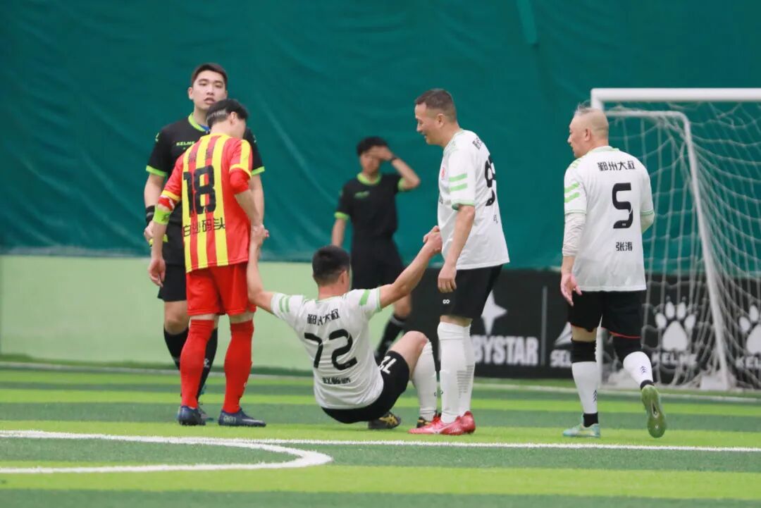 揭幕戰(zhàn)由快樂亞太對陣一中老炮,老將們雖然奔跑不如當(dāng)年輕盈,但是扎實的功底猶在,處理球穩(wěn)重不失合理,對抗激烈而有分寸。每一次突擊都是青春的回憶,每一次傳導(dǎo)都是歲月的沉淀。最終快樂亞太依靠胡翔的二連擊,以2:1的比分小勝一中老炮,林文忠為一中老炮打入一球。寧海老兄弟由一批曾經(jīng)活躍在寧波業(yè)余足壇的寧海足球老炮組成,葉偉江關(guān)鍵一擊,1:0力克勁旅寧波維成,占據(jù)出線先機。而A組的兩場比賽復(fù)刻了B組兩場比賽的比分,聚星核力于儀濤一劍封喉,幫助球隊艱難戰(zhàn)勝實力不俗的鄞州大叔隊;寧波恒星和慈溪中老年隊的比賽,可謂勢均力敵,陳勇和楊海勇的進(jìn)球讓兩支球隊的維持1:1的局面幾乎全場。慈溪隊長在最后時刻的紅牌導(dǎo)致場上均衡狀態(tài)被打破,陳勇壓哨進(jìn)球,寧波恒星驚險取勝。