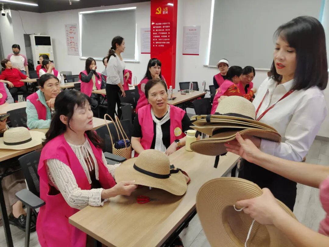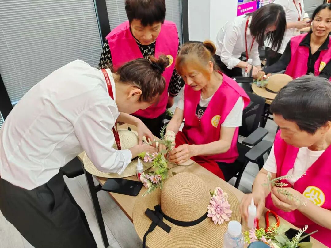 業(yè)主們圍坐一堂,或低頭構(gòu)思造型,或輕拈花朵比對(duì)位置,用珍珠串起絹帶,以層疊絹花點(diǎn)綴帽檐。活動(dòng)間隙還穿插了反詐知識(shí)宣傳環(huán)節(jié),隨著一頂頂獨(dú)一無二的帽子誕生,物業(yè)與業(yè)主的情誼也如帽檐的珍珠般,在貼心服務(wù)與真誠(chéng)互動(dòng)中愈發(fā)溫潤(rùn)生輝。